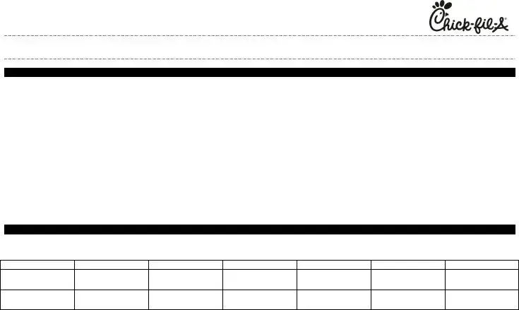 The Chick-fil-A Job Application form is a document used by prospective employees to apply for positions within the company. This form collects essential information about the applicant's background, skills, and availability. Completing it accurately is a crucial step toward joining the Chick-fil-A team.